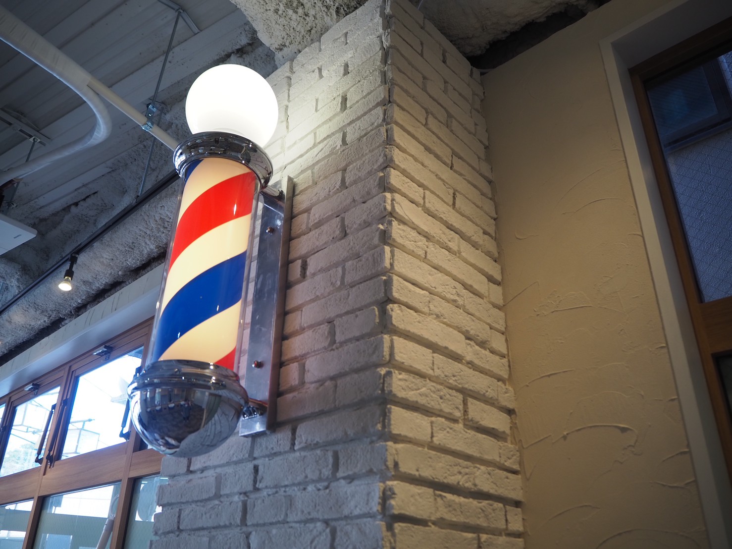 一見カフェかと思うような外観ですが、しっかりサインポールが主張しています。