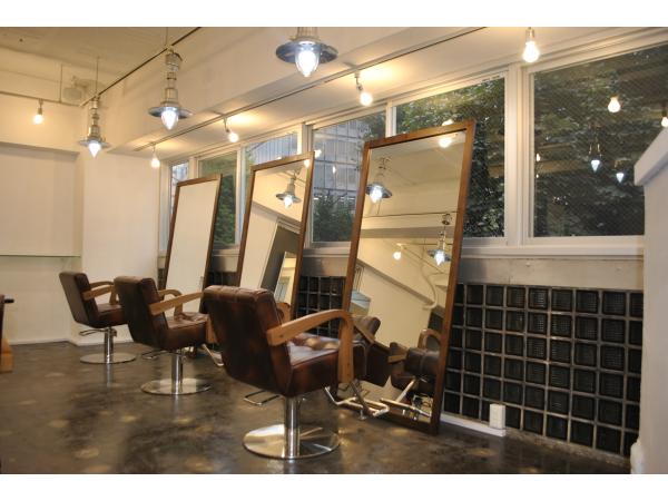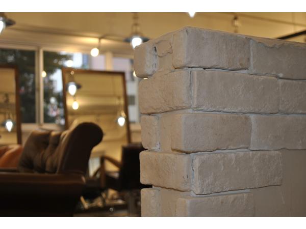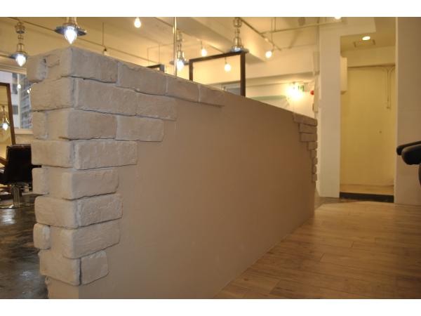 弊社新商品の両面自立ミラーでセット面を多く設けるように配置し、多くのお客様を収容出来る様にプランニング致しました。こだわりはブリックタイルとジョリパット仕上げです。