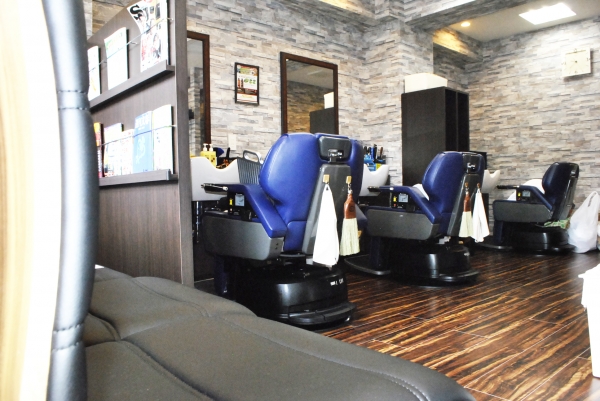 約8坪のテナントに3面のバーバー椅子を設置する為、 お客様の動線やシェービング時に椅子が倒れる寸法など使い勝手を考慮し 緻密な計算をしながら設計させて頂きました。