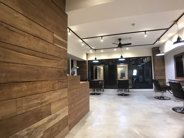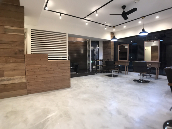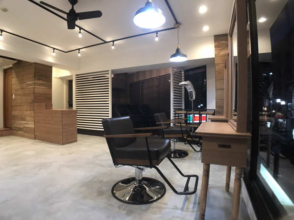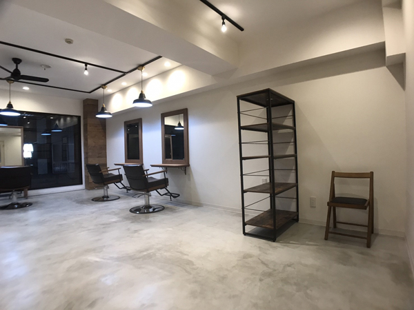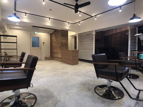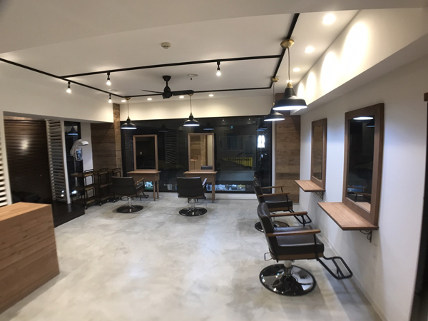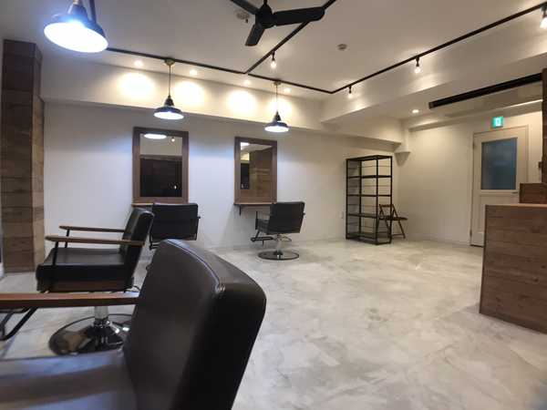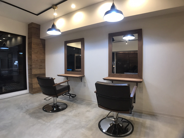 要所に配置したペンダントランプがお客様とスタイリストの空間を明るく照らす