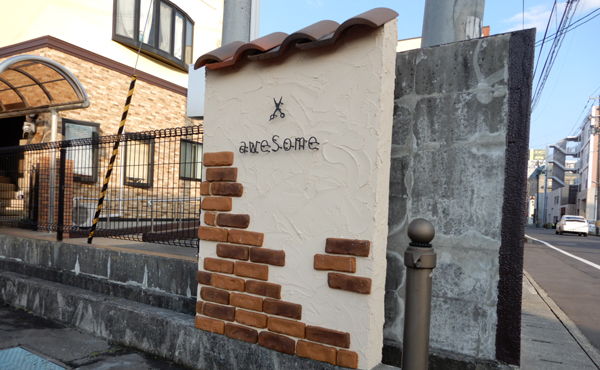 ジョリパットとレンガを組み合わせ、「素晴らしい」「最高」「すごい」の意味を持つ「aweSome」と店名を表記した外部サインを設置しています。
