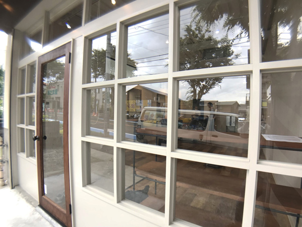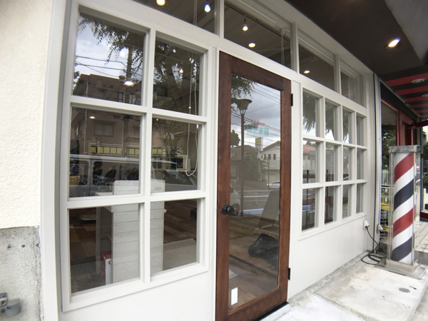 外装も統一し、グレーがかった木格子と 木の扉で統一感を演出。 大きめの窓にすることで圧迫感がなく、馴染みのお客様も、新規のお客様も、立ち寄りやすいお店となりました。