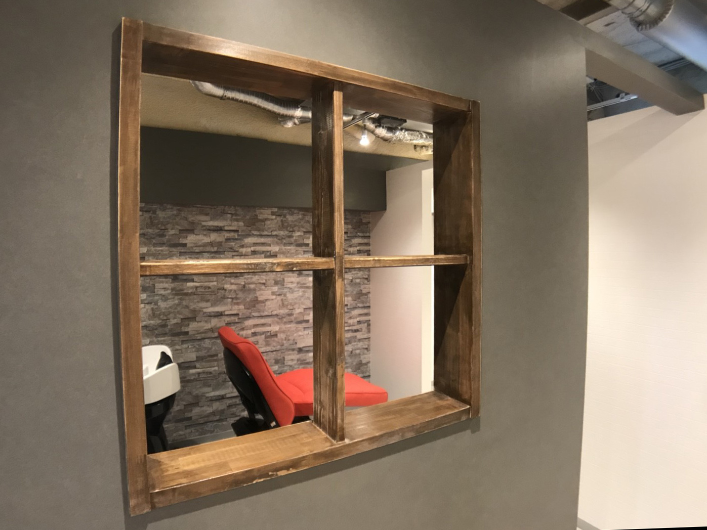 セシャンプーブースは、お選びになられた赤いシャンプーイスに合わせ、テイストをガラリと変えクールな印象に。