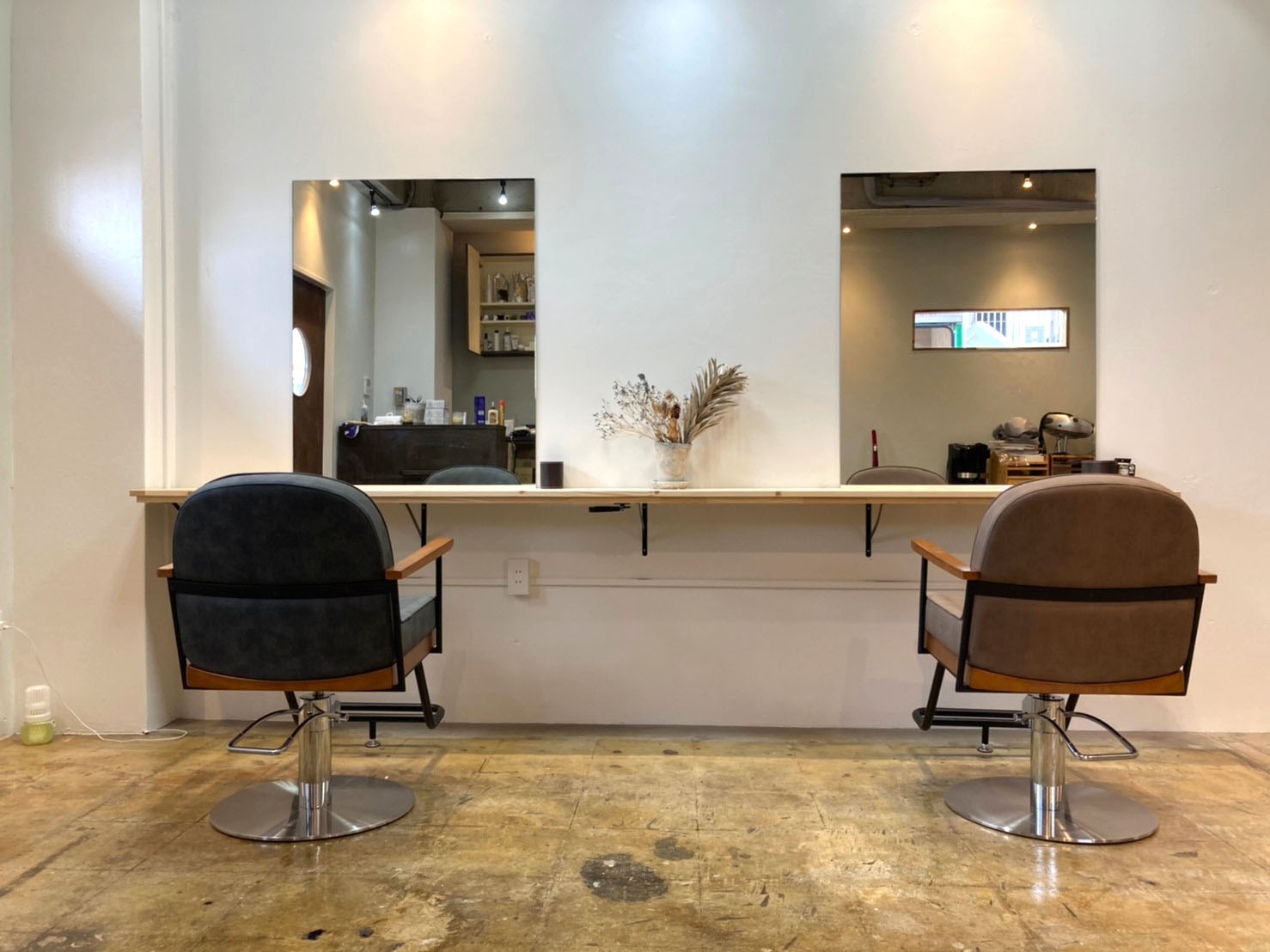 神奈川県座間市にオープンした「HAIR MAKE DESART」様。 オーナー様のセンスの良い小物遣いが映える本物の質感にこだわったシンプルな内装に。