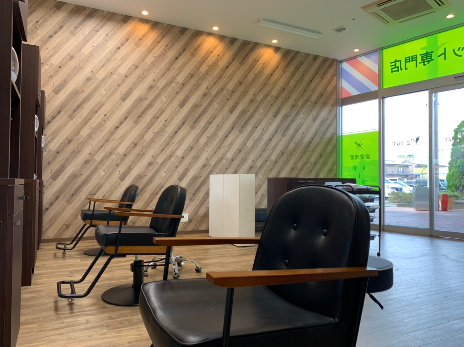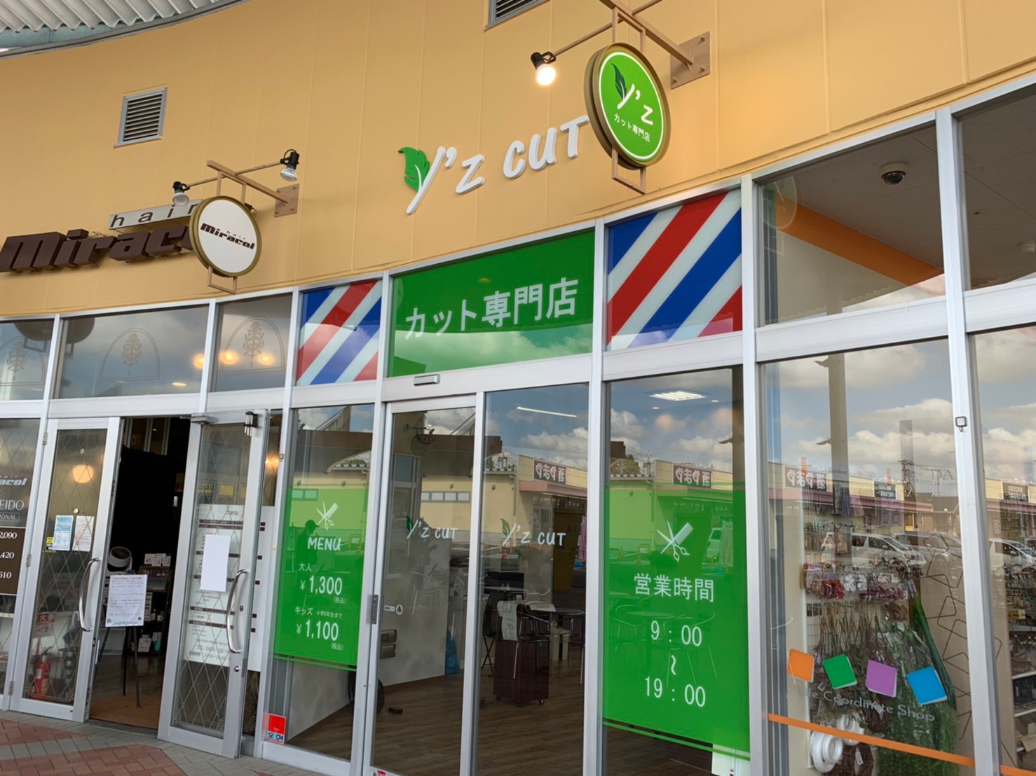 ファミリー層が多いショッピングセンターなので、外装は一目見てカット専門店とわかるような
