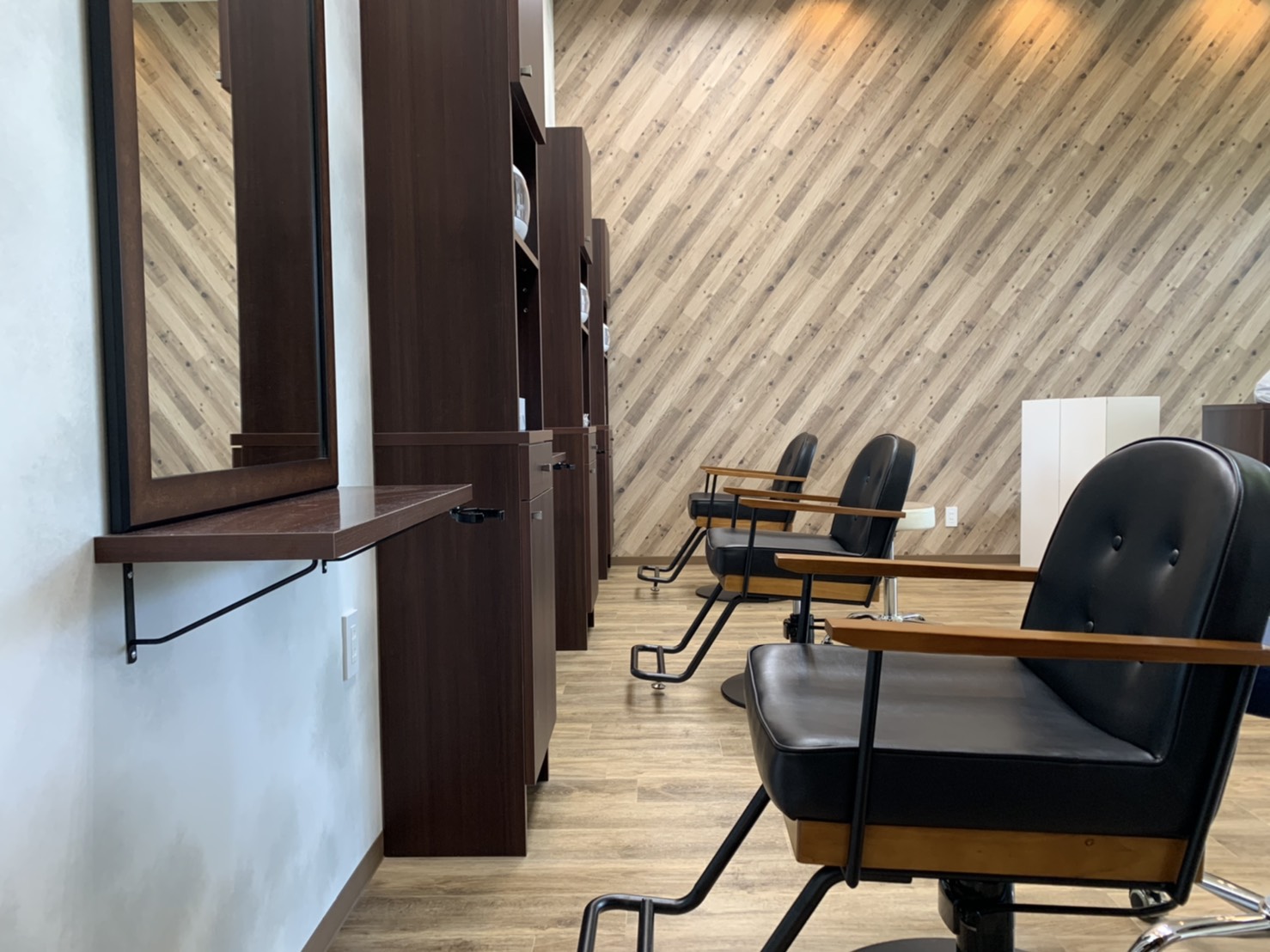 セット面は3席。ミラーやキャビネット、セットイスは