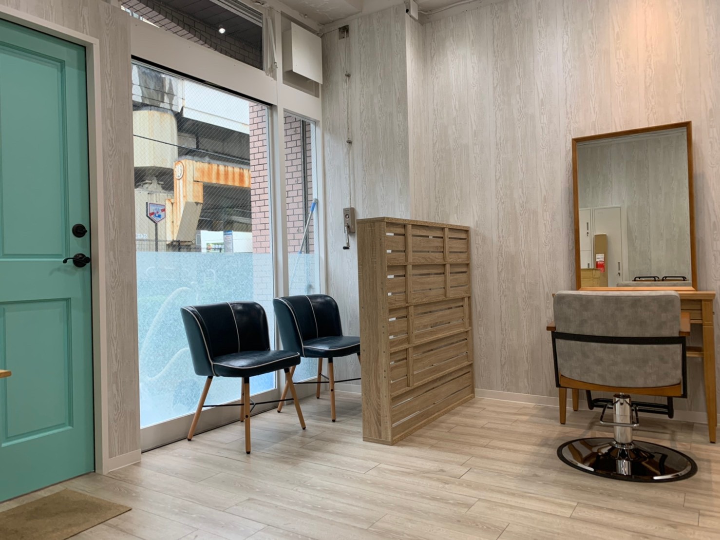 横浜市中区にオープンした「〜hono〜 hairsalon」様。 白い木目を基調にブルーのポイント使いでカルフォルニア風のデザインに。